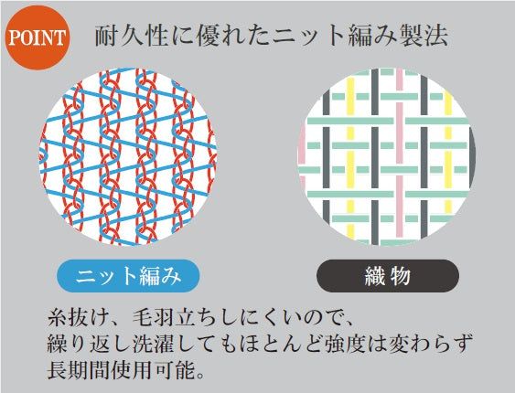 毛羽立ちや糸抜けがしにくく、食品への異物混入を防ぐ。