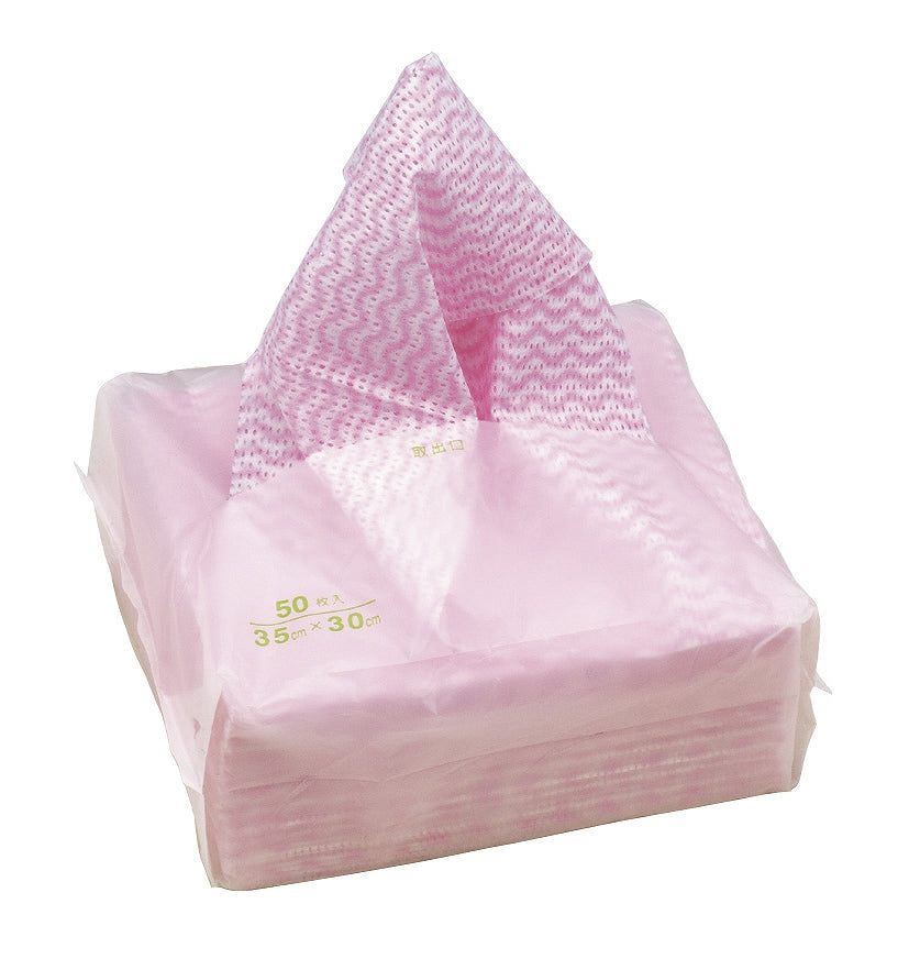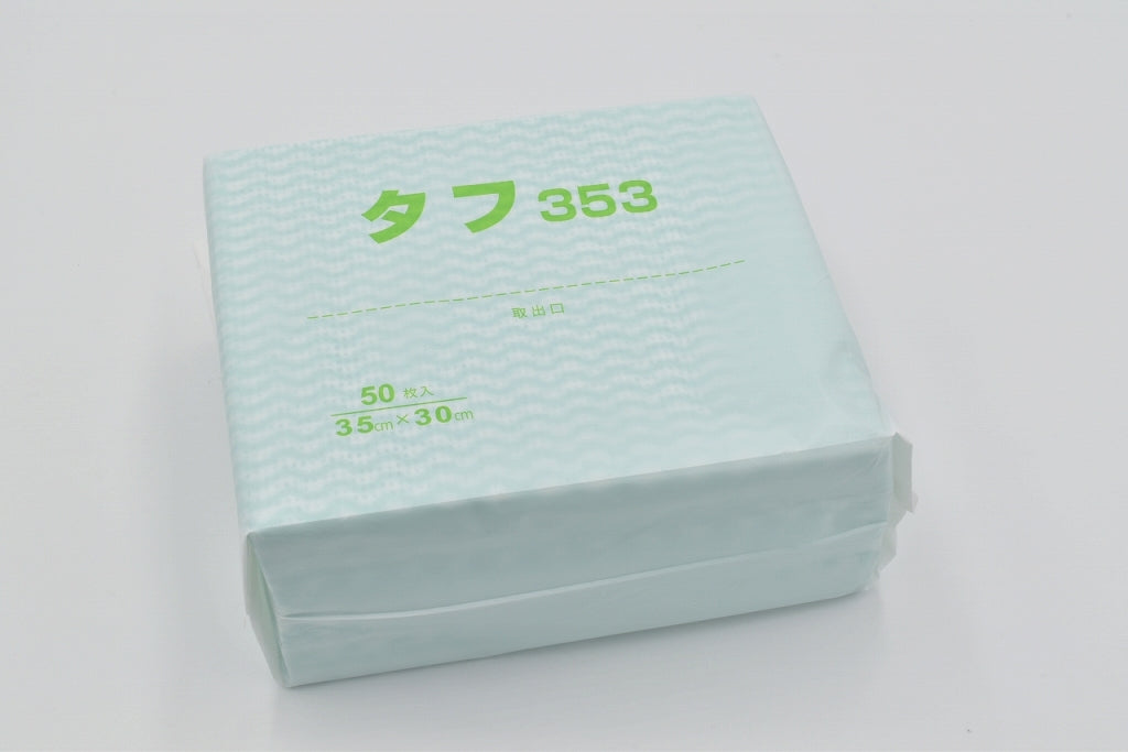縦横の強度バランスに優れた丈夫な不織布。破けにくく、毛羽立ちや毛玉にもなりにくい。