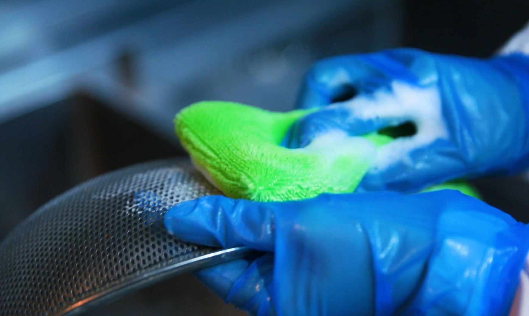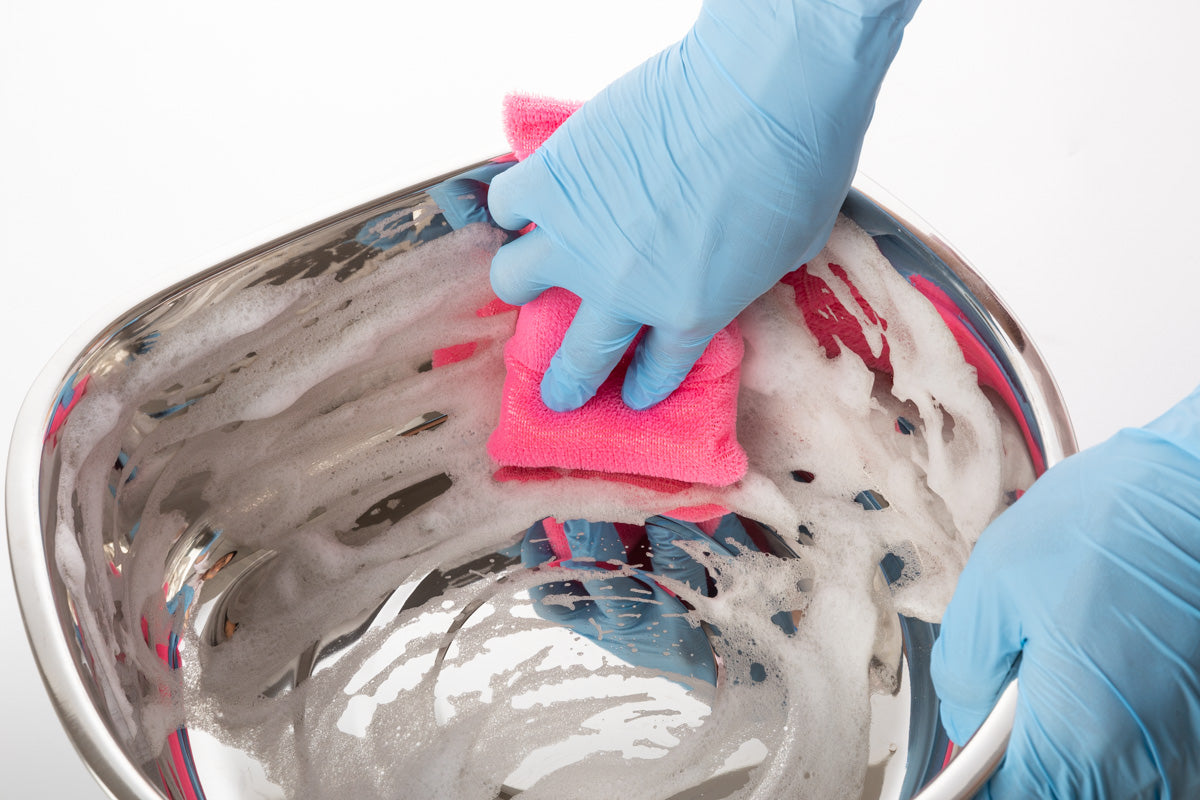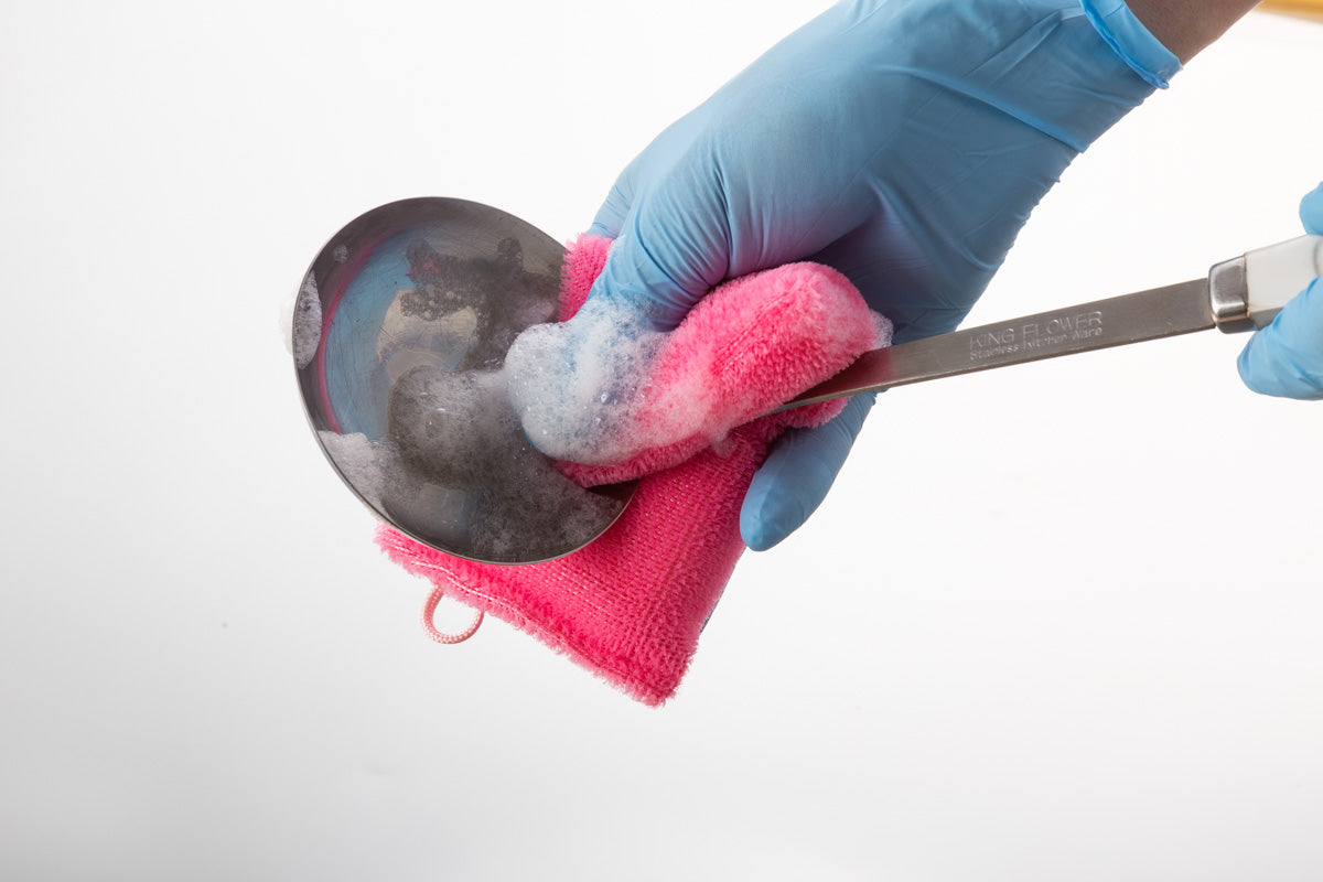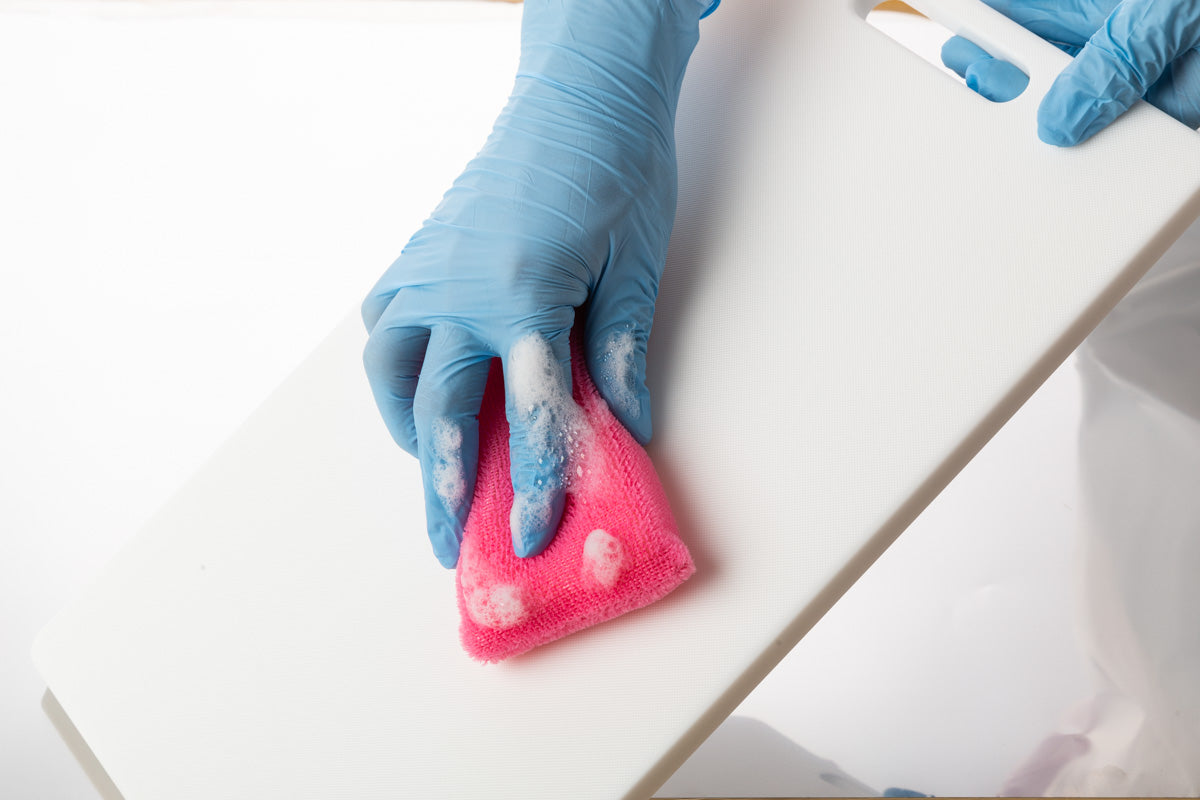 ザルの網目やまな板の包丁傷など細かい所を隅々まで洗浄。