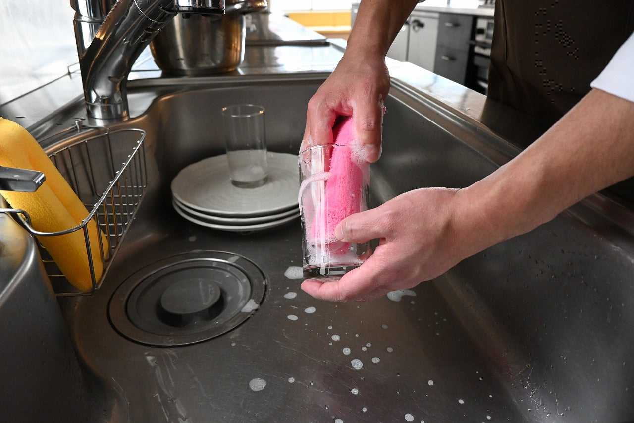 立毛繊維があることで一般的なスポンジでは届かない細かい部分も洗浄でき、容器なども傷をつけにくい。